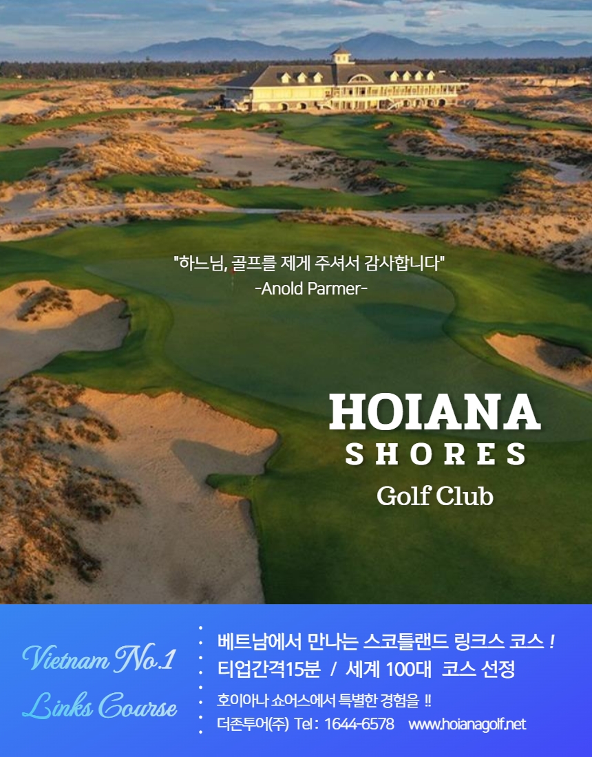 베트남은 남북으로 긴 해안선을 가지고 있습니다. 이 해안선을 따라 우리나라에서는 보기 힘든 링크스 코스가 많이 건설되었습니다. 그렉노먼이 설계한 붕타우의 #더블러프호짬CC 와 나트랑의 #KN깜란링크스, 다낭의 #몽고메리링크스 가 대표적입니다. 여기에 세계적인 링크스 코스 디자이너인 #로버트트렌드주니어2세 가 설계한 #호이아나쇼어스 가 새로운 주목을 받고 있습니다. 귀국 항공편이 저녁시간이면 조금 더 욕심을 내볼 수 있습니다. 다낭공항을 이용하기 때문에 귀국일 아침 체크아웃후 다낭의 여러 골프장들 ( #다낭CC, #몽고메리CC, #바나힐스CC, #라구나랑코CC )중 한곳에서 라운드하고 갈 수 있습니다. 닷새일정에 세곳의 골프장을 즐길 수 있게 됩니다. 호이아나쇼어스와 빈펄 남호이안CC 그리고 다낭의 골프장 한곳 이렇게 #3색골프 가 가능합니다.